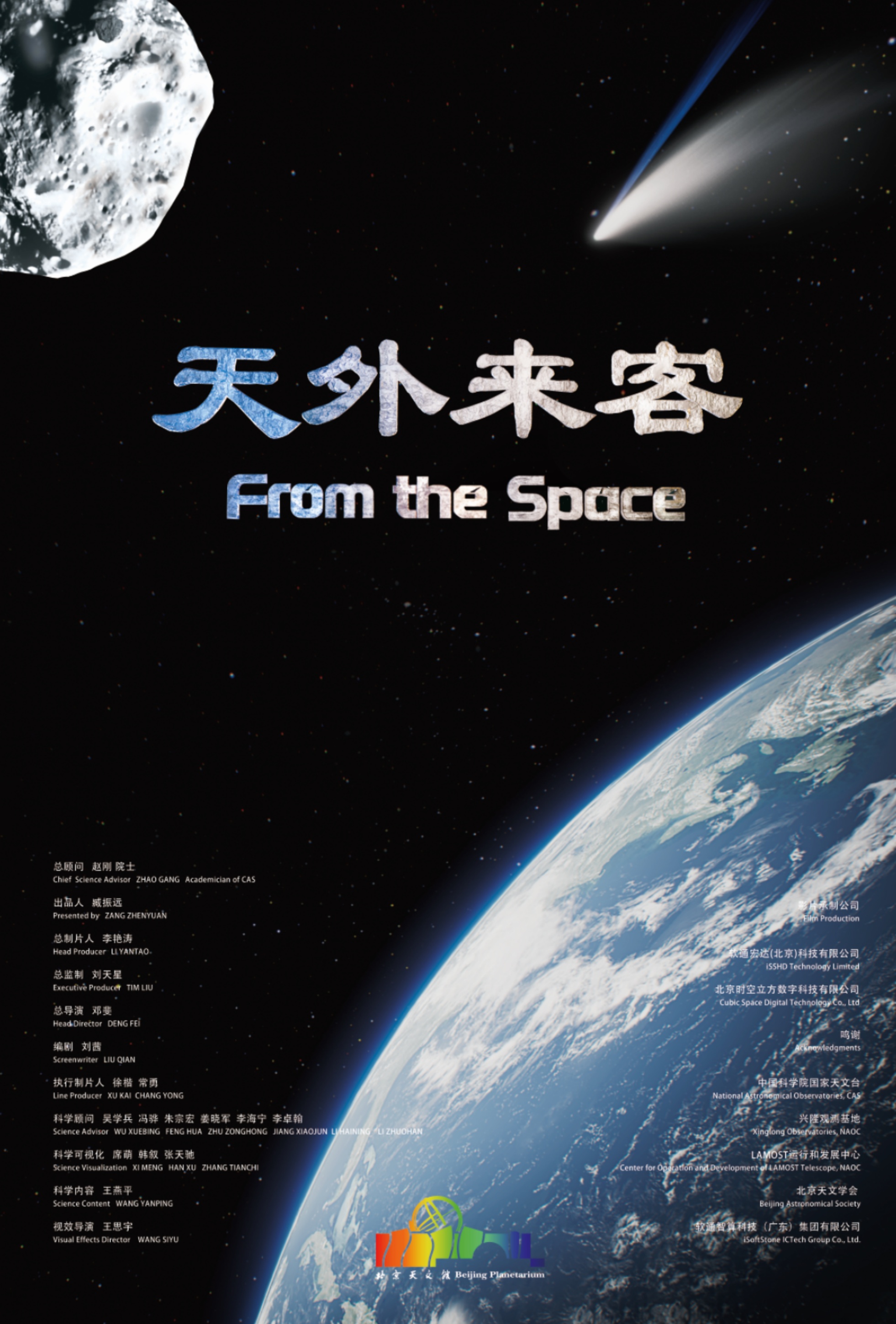 天外来客 25分钟巨幕影院影片跟随一对父子在天文馆探索的视角,带领观众认识来自地外空间的太空尘埃、流星体、小行星与彗星,讲述它们的起源,以及它们过去、现在和未来对地球产生的影响。 -